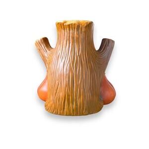 Vintage Whimsical Bisque Porcelain Ceramic. Halloween Decoration featuring carved jack o lanterns and a fall tree.