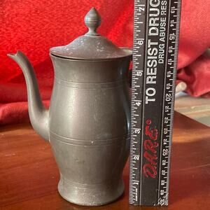 Pewter Coffee Tea Pot Server Service Vintage Lidded Gooseneck Spout Pitcher Hinged