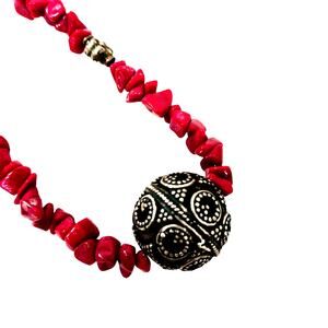 Elevate your style with this stunning VNT Red CORAL Necklace. Made of red Coral, Sterling silver beads Ball Pendent and Toggle.