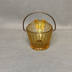 Vntg Toothpick/Ashtray Hazel Atlas Coal Bucket w/Handle Amber Depression Glass