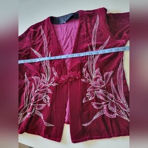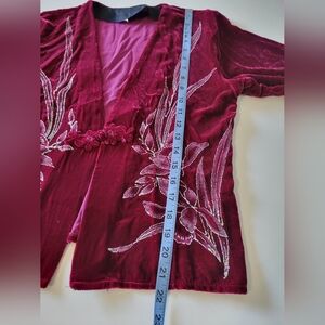 Vntg Velvet Womens Glitter Floral Cardigan Burgundy M?