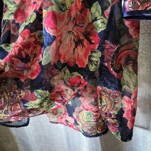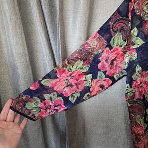 This vintage Victoria's Secret Gold Label sleepshirt is a perfect addition to your collection. The floral pattern and multicolor design make it a great choice for any season. The long sleeve chemise is made of polyester and satin fabric type which gives it a luxurious feel. The button closure adds a classic touch to this bohemian and sexy sleepwear.