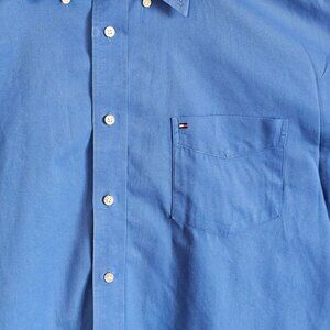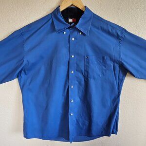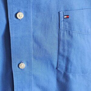 Vntg Y2K Tommy Hilfiger XL Mens Blue Shirt XL Cotton Business Casual Logo