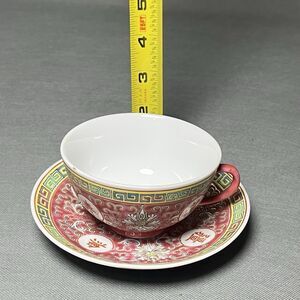 Vntg Zhongguo Jingdezhen Famille Rose Tea Cup & Saucer Longevity Porcelain-China