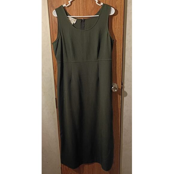 SEO: vintage karin stevens dress, petites midi maxi dress, green checkered dress, 90s y2k office dress, career sheath dress, modest elegant dress, rayon poly vintage dress, quietlux minimalist dress, petite size 10p dress, forest green vintage dress
