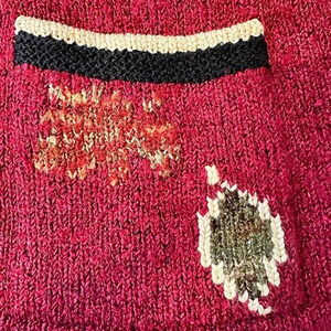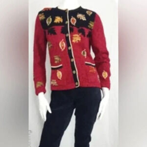 Beautiful vintage cardigan sweater with buttons. It was hand loomed in Bolivia and has an Autumn leaf pattern. Heavy weight