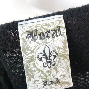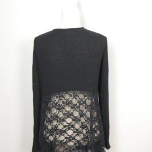 Vocal Black Waffleknit Open Long Sleeve Cardigan with Lace Long Back XL