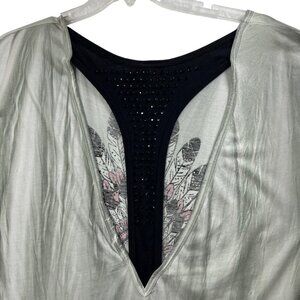 Vocal California Womens Size Large Embellished Feather Graphic Tee Racerback Moto USA Made Shirt Soft