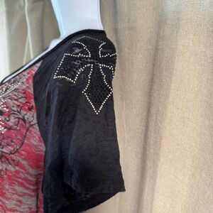 Vocal Cross T Shirt Black Red Gray Burnout Embellished Short Sleeve