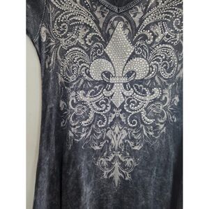 Vocal Fleur Charcoal Grey Rhinestone Embellishement 100% Cotton Sharkbite Top size Large