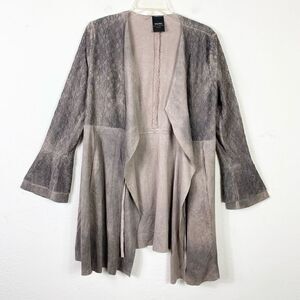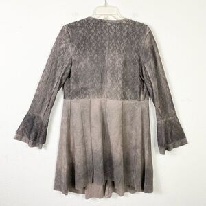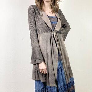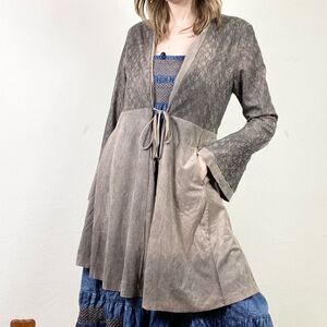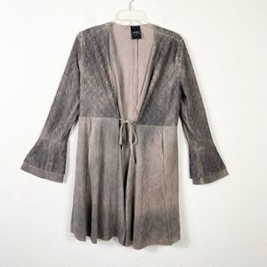 Vocal Grey Brown Faux Suede & Lace Bell Sleeve Ruffled Cardigan Jacket Size S