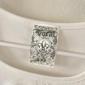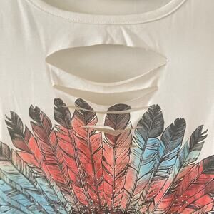 Vocal Native American Skull Graphic Tee Women Medium White Embellished Boho Chic