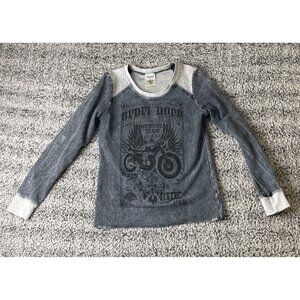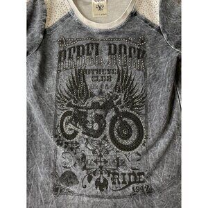 Vocal Rebel Rock Motorcycle Club Womens Medium Long Sleeve Top Rhinestone Grunge