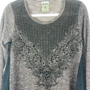 Vocal U.S.A. embellished mixed media long sleeve tunic Sz S