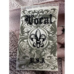 Wrap yourself in soft romanticism with this ethereal pink open‑front duster by Vocal, made in China. The delicate lace detailing on the back evokes coquettecore and whimsical goth moods while the fluid drape gives it a floated, dreamy silhouette. Flat measurements: approx. 19" pit to pit, and the length falls between 38" in front to 41" at the longest drape. Crafted of 100% polyester with a lightweight, satiny knit texture. In good condition with only gentle wear — no holes, stains, or pulls, and the lace remains intact and supple. This piece pairs beautifully with jaded corsets, ambient layers, or dark rom-com ensembles. Ships from the USA.