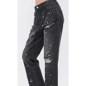 PEARL EMBELLISHED FRONT RIPPED JEANS