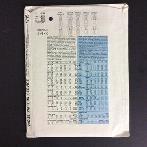 This 1986 Vogue 1715 sewing pattern offers classic dress designs in sizes 6, 8, and 10. The uncut pattern ensures pristine condition for crafting.