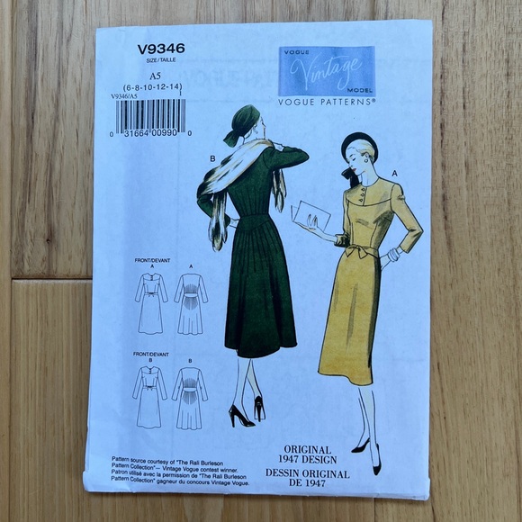 Vogue 9346 Vintage Reproduction Pattern