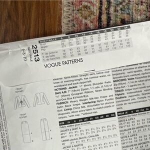 Vogue Guy Laroche 2513 VTG Sewing Pattern Tie-Front, Collarless Jacket & Skirt Size: 6 / 8 / 10