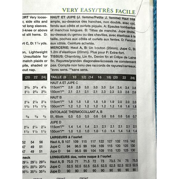 Vogue Pattern 7612 long top straight skirt size 14 16 18