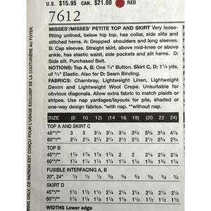 Vogue Pattern 7612 long top straight skirt size 14 16 18