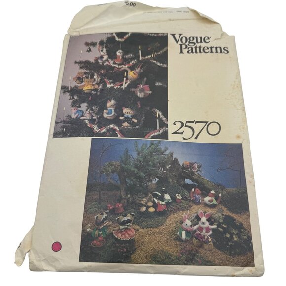 Bring festive joy to your crafting projects with this Vogue Patterns 2570 vintage sewing pattern. This set allows you to create delightful felt Christmas ornaments, featuring whimsical animals that double as tree decorations or charming gift accents.
