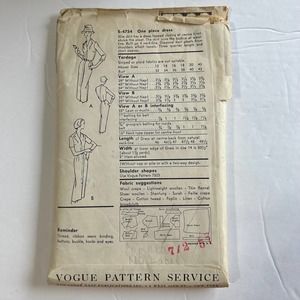 Vogue Special Design Vintage 1950's Pattern #S-4754 Women's Dress Size 18 HTF