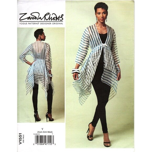 Vogue V1551 Misses Cover-up by Zandra Rhodes offers a chic and versatile sewing pattern for sizes XS to M. Unleash your creativity with this uncut design, perfect for crafting a unique wardrobe staple.