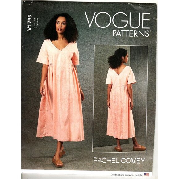 The Vogue V1799 is a chic, dropped shoulder midi dress pattern from Rachel Comey. Perfect for all skill levels, this pattern offers sizes XS to M.