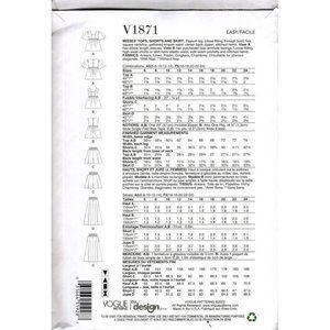 This Vogue V1871 Misses Top, Shorts, and Skirt uncut sewing pattern is perfect for sizes 16 to 24. Enhance your wardrobe with this versatile and trendy pattern from Vogue Patterns.