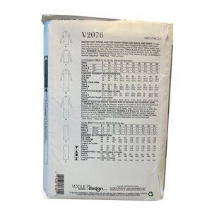 Designed for moderate stretch knits such as cotton knit, French terry, sweatshirt fleece, and wool jersey, this pattern is suitable for fabrics with 35% cross grain stretch. The pattern is easy to sew, making it ideal for both beginners and experienced sewists. Finished garment measurements and fabric requirements are clearly detailed to help you achieve a perfect fit. Enjoy creating modern, comfortable garments that blend style and ease with this Vogue sewing pattern.
