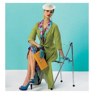 The Vogue V8875 Misses 8 to 16 sewing pattern allows you to create a fitted dress and coat inspired by the fashion of the 1950s. This uncut pattern by Vogue Patterns is suitable for intermediate sewers.