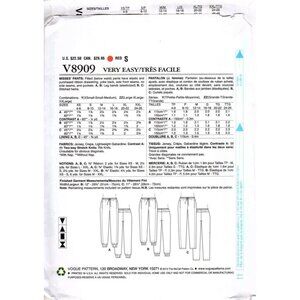 This Vogue Patterns V8909 is a sewing pattern designed to effortlessly create stylish pants, ideal for both casual outings and semi-formal events. These pants feature an elasticized waist and ankle cuffs, allowing for a comfortable yet chic fit. With easy-to-follow instructions, this pattern caters to a range of skill levels, making it accessible for beginners and seasoned seamstresses alike.