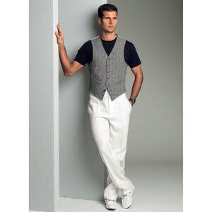 This Vogue V8987 Mens 40 to 46 Button Front Vest Uncut Sewing pattern lets you create stylish, custom-fit vests. It's an uncut pattern from the trusted brand Vogue Patterns.