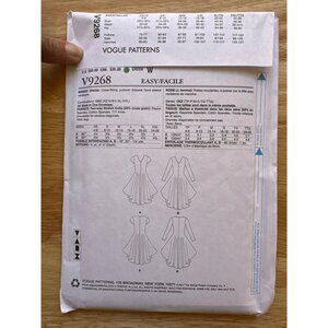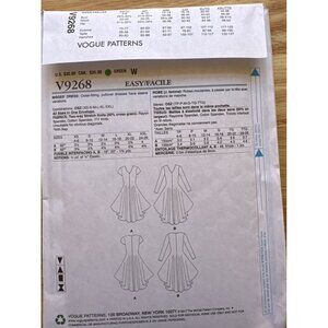 Vogue V9268 Designer Dress Pattern by Kathryn Brenne features two elegant variations of a fit-and-flare dress with an asymmetrical hem, designed for knit fabrics. This original Vogue pattern includes all sizes (OSZ) in one envelope and offers options for both short and long sleeves. Sizes XS - XXL UNCUT SKU 0260