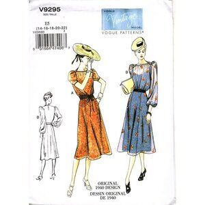Vogue V9294 Misses 14 to 22 Circa 1940 Semi Fitted Dress UNCUT Sewing Pattern