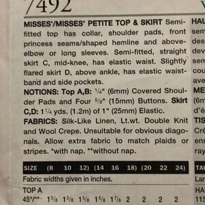 Vogue 7492 Womens suit pencil or maxi skirt pants sz 8 10 12