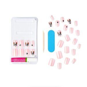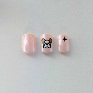 * On trend pink fashion nails are short length & square shaped with a starry bulldog / boston terrier design