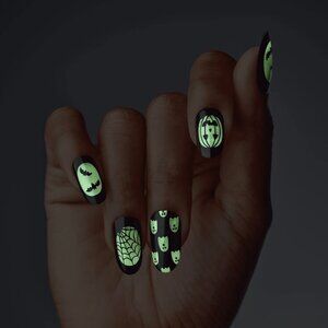 Unleash your Halloween spirit with KISS Limited Edition Voguish Fantasy Press-On Nails with glue. Not only do these nails glow in the dark, but also feature new color-change effect. The mani’s come in a wicked array of styles, colors, and sizes.