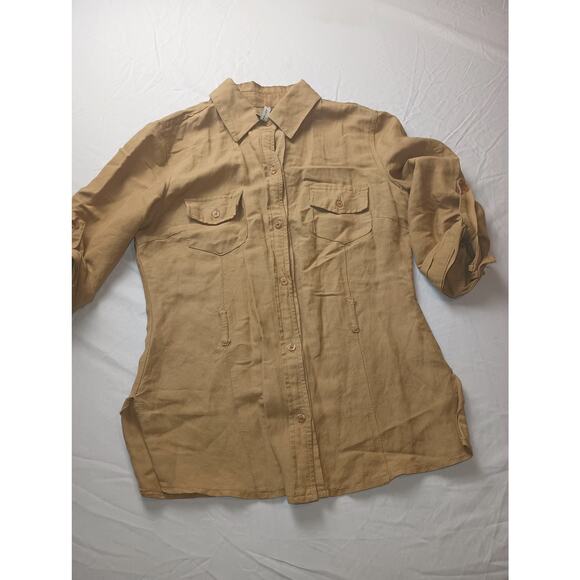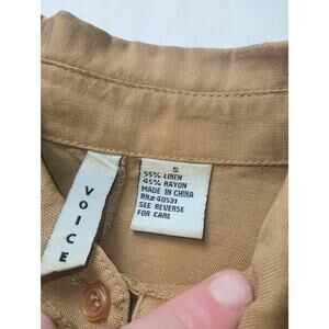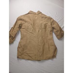 Voice 3/4th Rolled Sleeve Military Style Khaki Button Down Jacket, Linen Small.