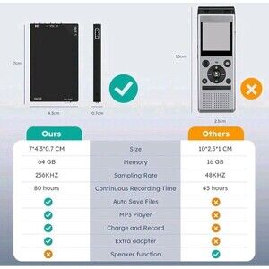 64 GB digital voice recorder with a radio range of 100 m you don't have to worry about the recording being unclear when you sit in the last row of the classroom. Tips you must be able to hear the professor speak for the recording to work