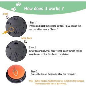 🧿【🐾30 Second Clear Recording】 The recording button can record up to 30 seconds. it's very loud and clear. You can repeat the different sounds recorded.Small size, easy to carry. Great toy for play games when friends to get together or go out on picnics or outings. Very practical and interesting!