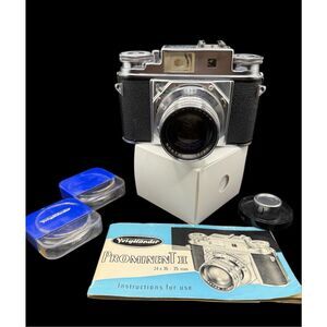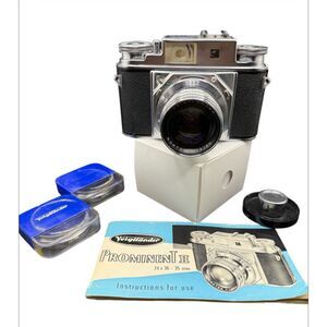 This vintage Voigtländer Prominent II camera is a true gem for any film photography enthusiast. With a sleek silver design and manual focus, this camera is perfect for capturing stunning shots in 35mm format. Made in Germany in the 1950s, this camera is a rare find for collectors and photographers alike. Featuring a range of impressive aspects including a Voigtländer brand, Prominent series.