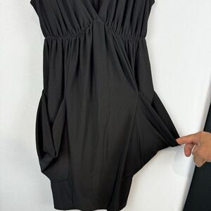 Voilà Black Gathered Dress Polyester Spandex Pockets USA Made XS/S LBD