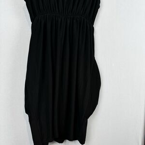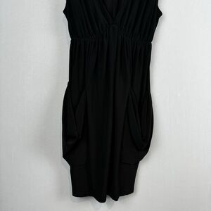 Voilà Black Gathered Dress Polyester Spandex Pockets USA Made S