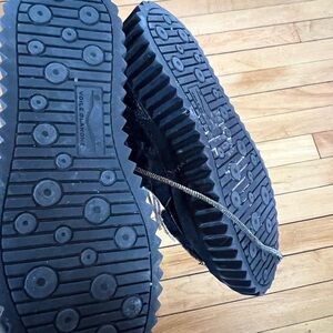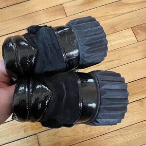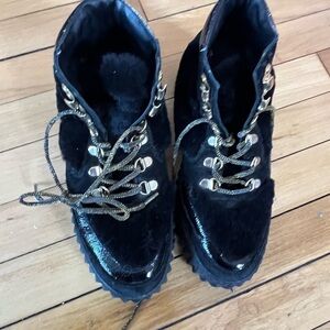 Voile Blanche Eva Shearling Hiker Boots in black Size 38 or a US 7. GUC. Elegant black velvet boots. Features gold eyelets and laces. Perfect for a chic look.