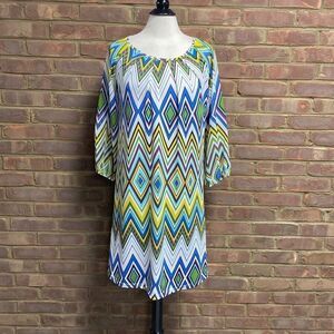 Voir Voir Multi Color Pleated Neck Dress Size 8