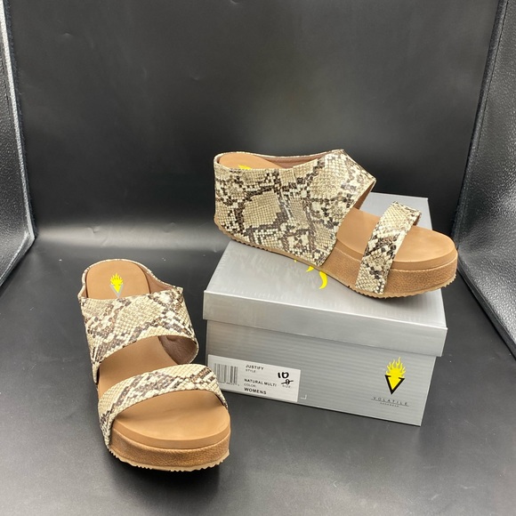 Volatile Justify Natural Multi Python Wedge Sandals