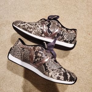 Gorgeous metallic sheen in these python sneakers from Volatile. Wore once. Like new