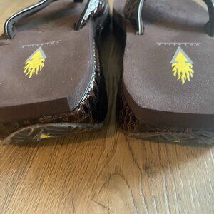 Volatile Textured Flip Flops Platform Sandals Slip-On Wedge Brown Size 8